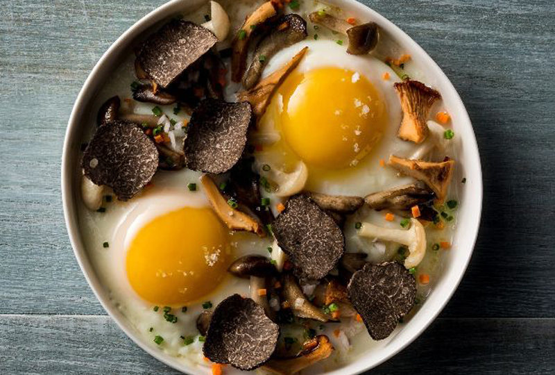 Chef Pano Karatassos puts a spin on a popular Greek recipe for fried eggs with wild asparagus by swapping in mushrooms and showering them with shaved truffles. Chef Pano is the executive chef of Kyma in Atlanta and corporate executive chef of the Buckhead Life Restaurant Group, which operates several restaurants in Atlanta and Florida. In addition, he beat Bobby Flay in the popular television show with his signature dish, lamb pie. This recipe is taken from his cookbook, Modern Greek Cooking. This recipe is taken from this cookbook, as well as the full recipe for Wild Mushrooms “à la Grecque”.