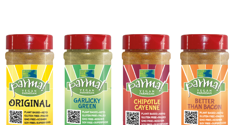 Parma! is a dairy-free cheese brand that offers vegan cheese lovers a range of dairy-free, protein-rich condiments ideal for main dishes, salads and pizza. Created in Oregon just over 15 years ago by Sister River Foods’ founder Shannon Schnibbe, Parma! was established in response to a rapidly-growing need within the vegetarian marketplace for a breakthrough allergen-free parmesan alternative.