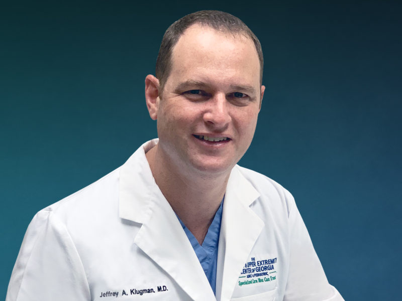 Repairing sports injuries, tackling the challenges of birth defects and advising patients of all ages as to the best route to healing a damaged hand or arm is all in a day’s work for Dr. Jeffrey Klugman, who has been recognized by Atlanta Magazine as one of Atlanta’s Top Docs. He hails from Philadelphia, but chose Atlanta for his home, where he specializes exclusively in adult and pediatric hand and upper extremity surgery. Dr. Klugman attended medical school at Tufts University where he was selected into the Alpha Omega Alpha Honor Society and graduated in the top three percent of his class. He completed an orthopaedic internship, residency and chief residency at the world-renowned Hospital for Joint Diseases Orthopaedic Institute/New York University Medical Center. He was chosen for and completed the Harvard University Hand and Upper Extremity Fellowship, which included training at Massachusetts General Hospital, Boston Children’s Hospital and Brigham and Women’s Hospital.