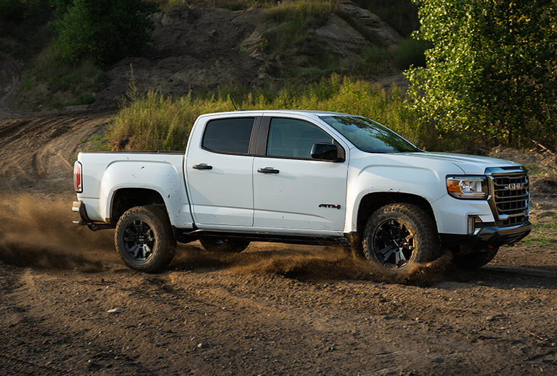 The GMC 2021 Canyon 4WD AT4 Crew Cab is perfect for going off the grid and escaping into nature. This truck is built for adventure. It handles mud, potholes, hills and rough roads with ease. Several standard features facilitate the off-road adventure. For instance, the Advanced Hill Descent Control System with antilock braking provides a smooth descent in rough terrain that allows you to go downhill with confidence and, we dare say, with a little fun. It also has StabiliTrak® ElectronicStability Control that can tell the difference between the road and the direction the truck is actually going, and keeps the vehicle on the straight and narrow by using the brake and adjusting the engine’s torque. Other standard equipment that will thrill outdoor enthusiasts are the transfer case skid plate that provides addition protection when off the beaten path, four-wheel drive system with Eaton G80 Rear Automatic Locking Differential and 31-inch Goodyear Wrangler DuraTrac® tires fitted to 17-inch wheels.