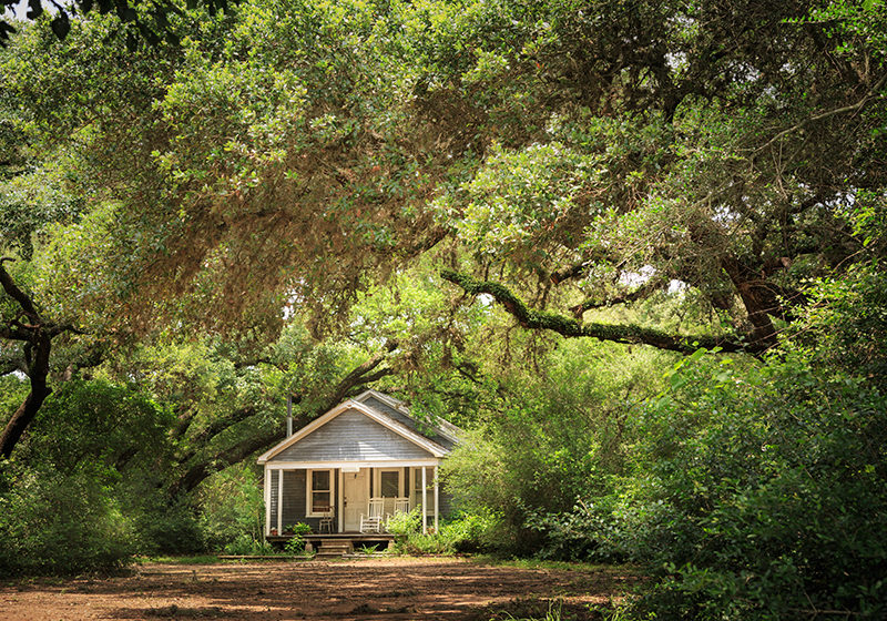 BlissWood Bed and Breakfast, located on a 350-acre working ranch about an hour west of Houston, features its own lake, horseback riding center, barn and exotic animal safari. The B&B consists of 14 cabins and cottages with woodsy furniture, full kitchens, sitting areas and porches; some include wood-burning fireplaces or stoves, whirlpool baths, and hot tubs. There are also some glamping options (Grand Safari Tent, Conestoga Covered Wagon, Deluxe RVs).