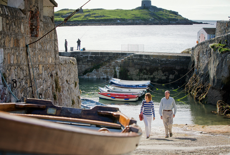 Heading north from Dublin city centre, Howth, a foodie haven, and set amid magnificent coastal scenery. Discover its waterfront, piers and numerous walks, including a narrow cliff walk providing a breathtaking seaside adventure with superb views of the water and Dublin city.